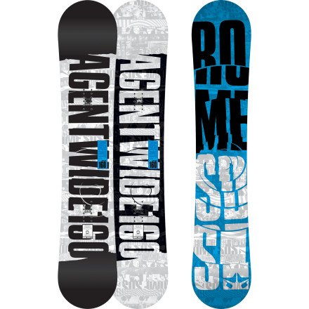 The Rome Agent Wide Snowboard is no stranger to freestyle madness all over the mountain. When the park is blanketed in pow, the Agent Wide takes its big-foot-friendly waist width beyond the ropes to seek out cliff drops, face shots, and pillow lines. On sunny days it carves up the corduroy with Rome's QuickRip sidecut. Eventually, the Agent Wide will head to the park, popping off jumps with the new pop sensation, PressurePop technology. For the metal-on-metal hot jib action, there are the malevolence-resistant Impact edges, which are even thicker than Rome's already resilient edges.